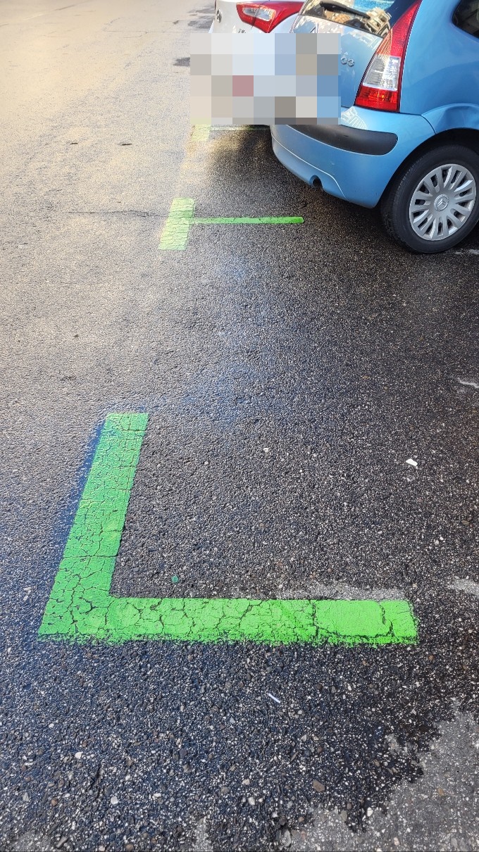 b) 초록색 주차공간